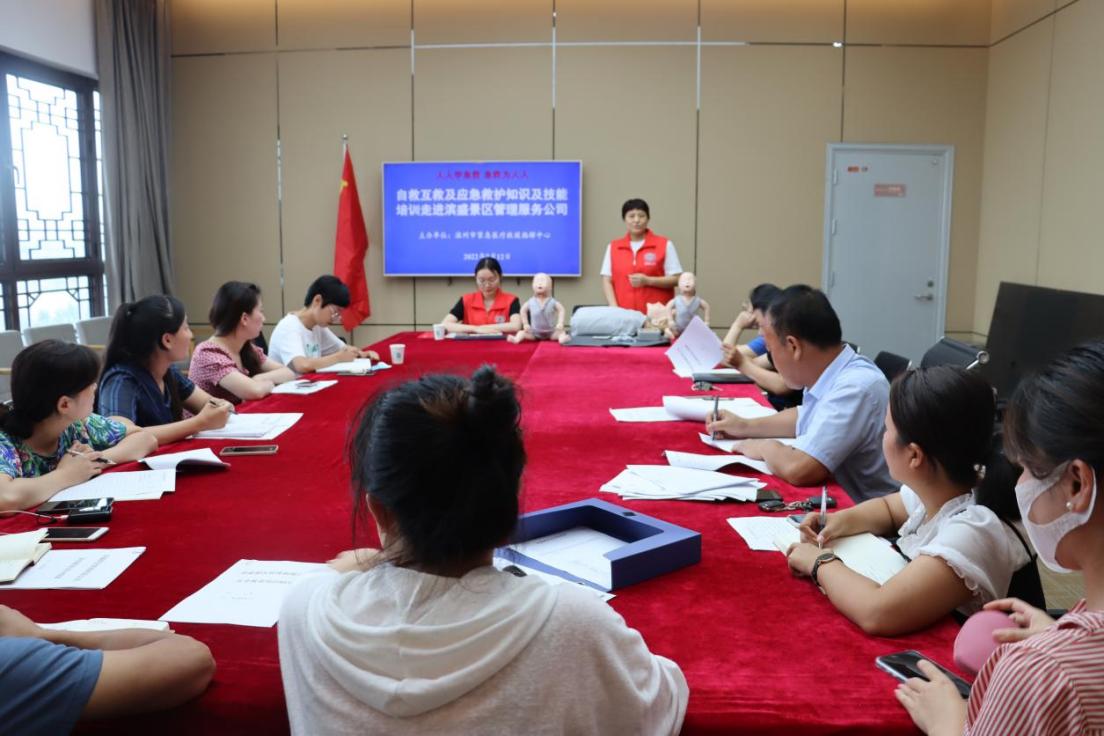 人員結合自身多年急救工作經(jīng)驗,深入淺出地講授了應急救護的目的和原則、應急救護的程序和注意事項等基本知識,并圍繞心肺復蘇術、自動體外除顫儀(AED)使用等緊急狀態(tài)下的救護知識和技能開展實操演練,取得了良好的效果。此次培訓旨在普及員工應急救護知識,提升員工應急救護意識和應對突發(fā)情況的應急救援及自救互救能力,對推動景區(qū)公司安全發(fā)展起到積極作用。