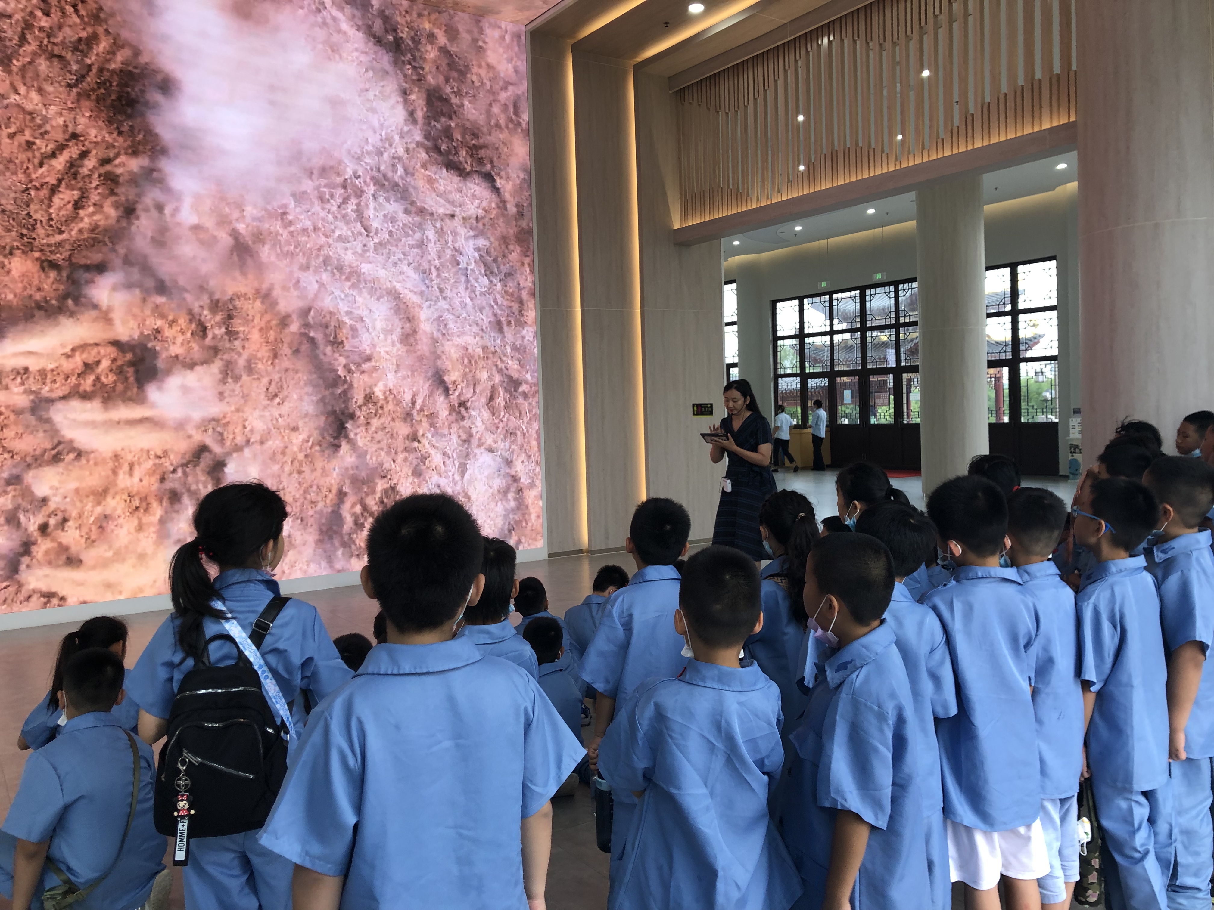 在黃河樓,每一層都有不同的主題,全景黃河、溯源黃河、智者智城、歷史黃河、安瀾黃河、生態(tài)黃河、幸福黃河、藝術黃河等11個不同場館依次向大家展示,孩子們在講解員的帶領下,深入了解了歷朝歷代治黃過程、黃河流經地風土人情、黃河高質量發(fā)展等黃河治理和黃河保護科普知識,認識到黃河治理目前存在的水資源供需矛盾突出、斷流頻繁、水污染加劇、河道形態(tài)惡化等問題,孩子們也深切感受到了黃河治理的任重道遠。